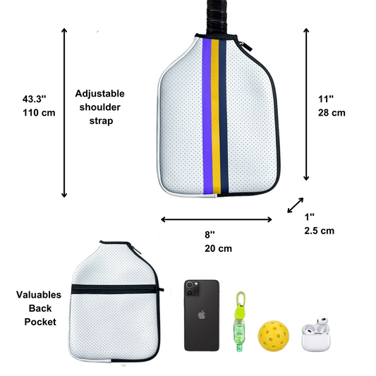White & Black Pickleball Paddle Compact Bag - Shoulder Strap